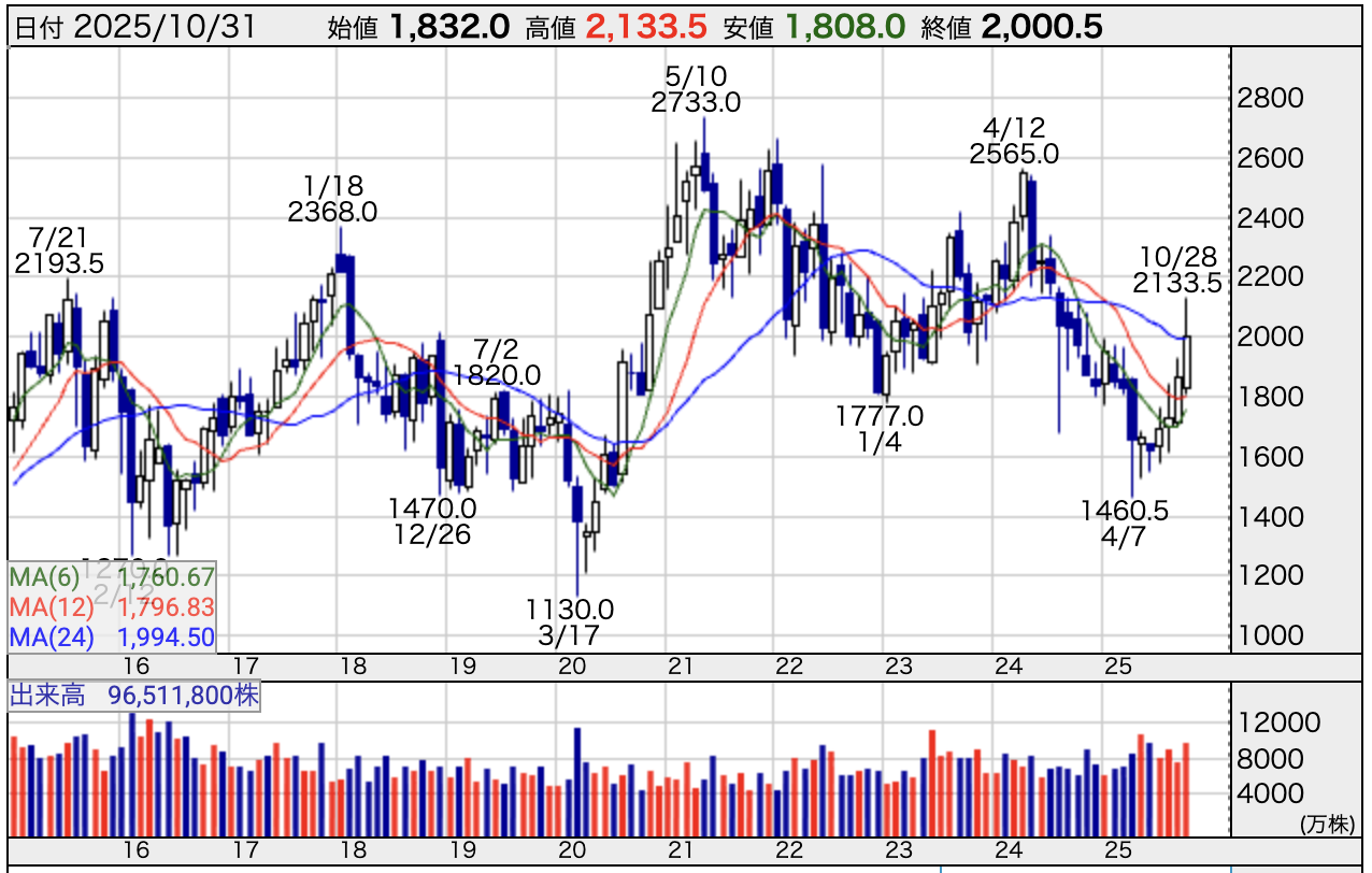 | 日本取引所グループ(JPX) | 14(+2) | ¥1,070 | ¥23,135 | +¥8,155 | +54.43% |